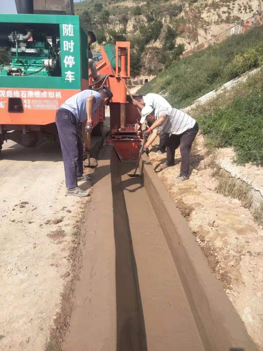 在施工建设中路肩石水渠机流程的使..