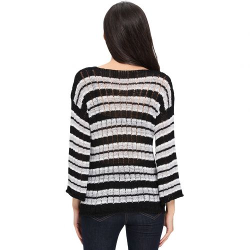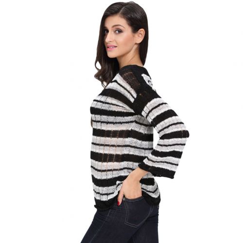 秋冬新款条纹长袖薄纱针织宽松时尚..