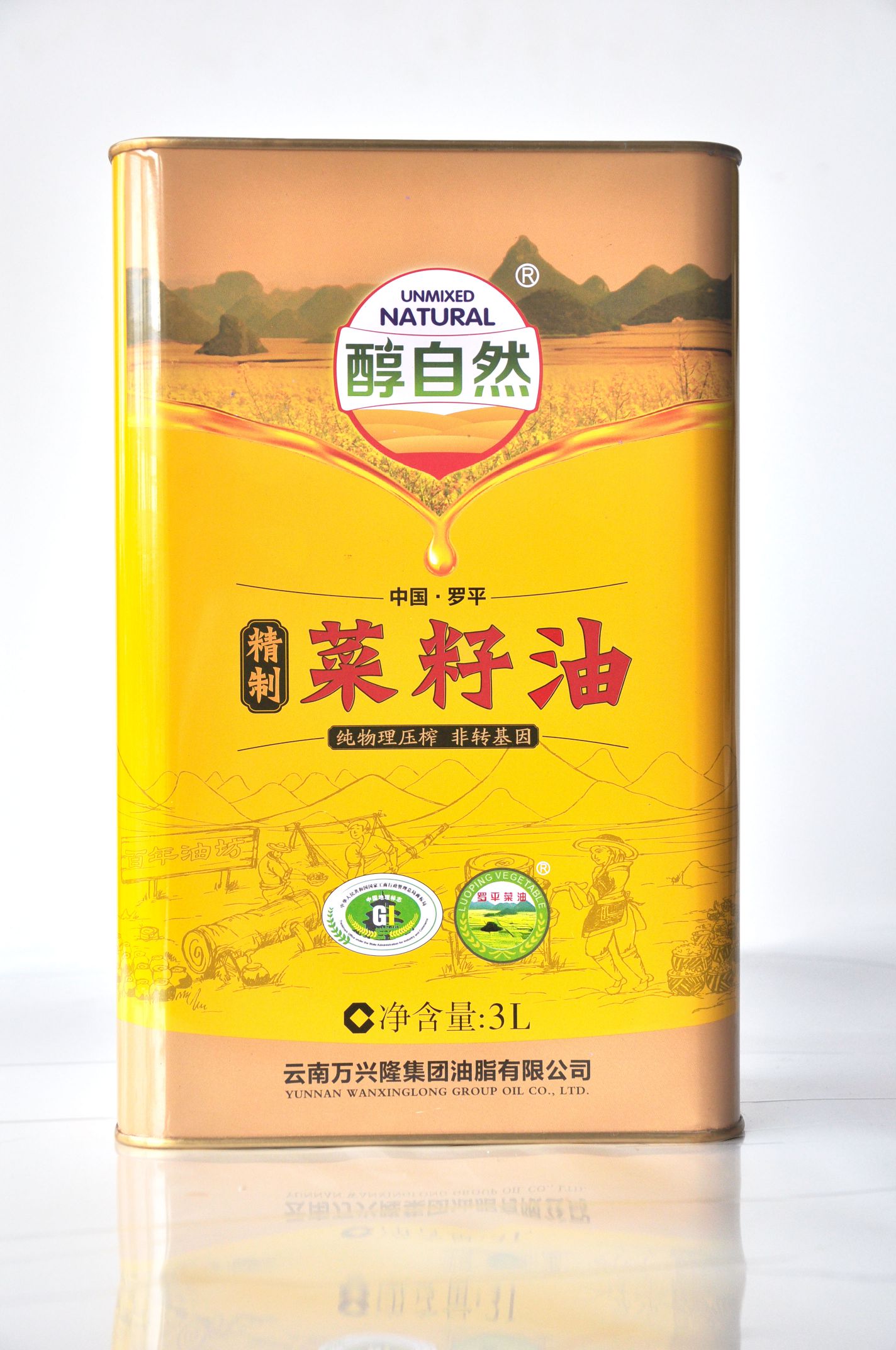 醇自然菜籽油三级3L铁罐装