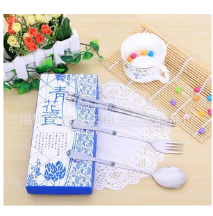 纸盒青花瓷叉勺筷三件套装 高档礼..
