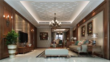 绿地悦城146平3房美式风格设计..