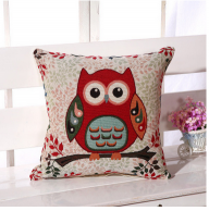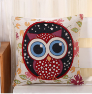 厂家直销 优质棉麻刺绣猫头鹰靠垫..